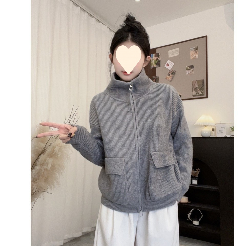 Double Zipper Knitted Cardigan Women Coat