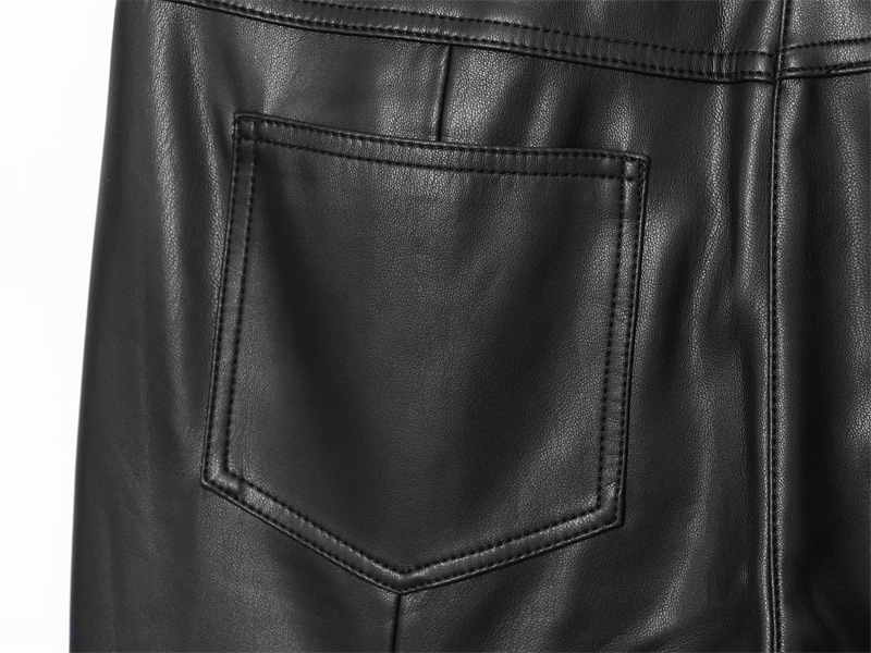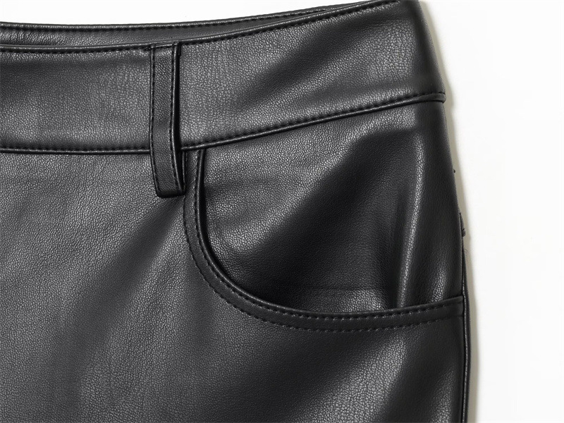 Cord-waist Micro-flared Pants For Leg-lengthening, Figure-hugging Casual Leather Pants