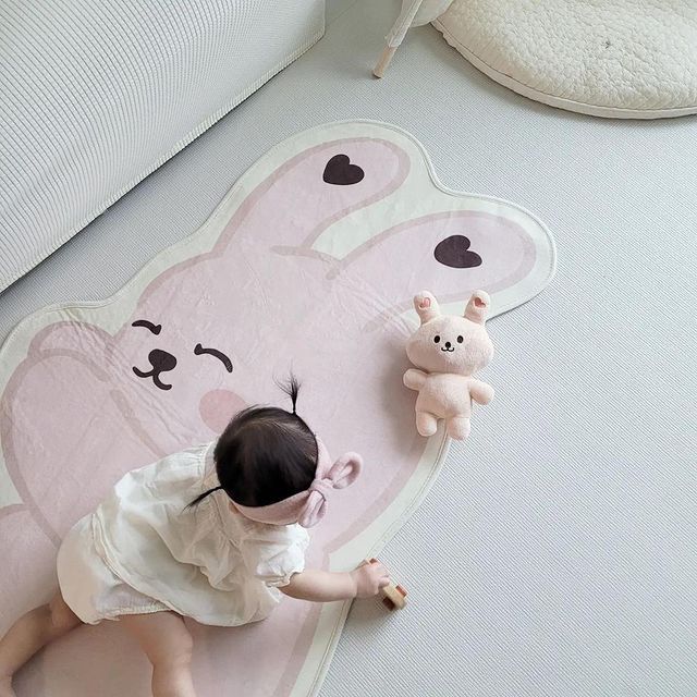 Plush Play Floor Mat Rabbit Printing Carpet Baby Crawling Mat Carpet