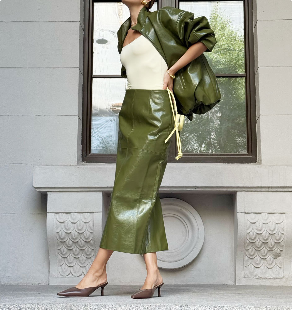 High-end PU Leather Midi Skirt - [[{"value":"{{ Babyvera Babyvera  }}"}]]