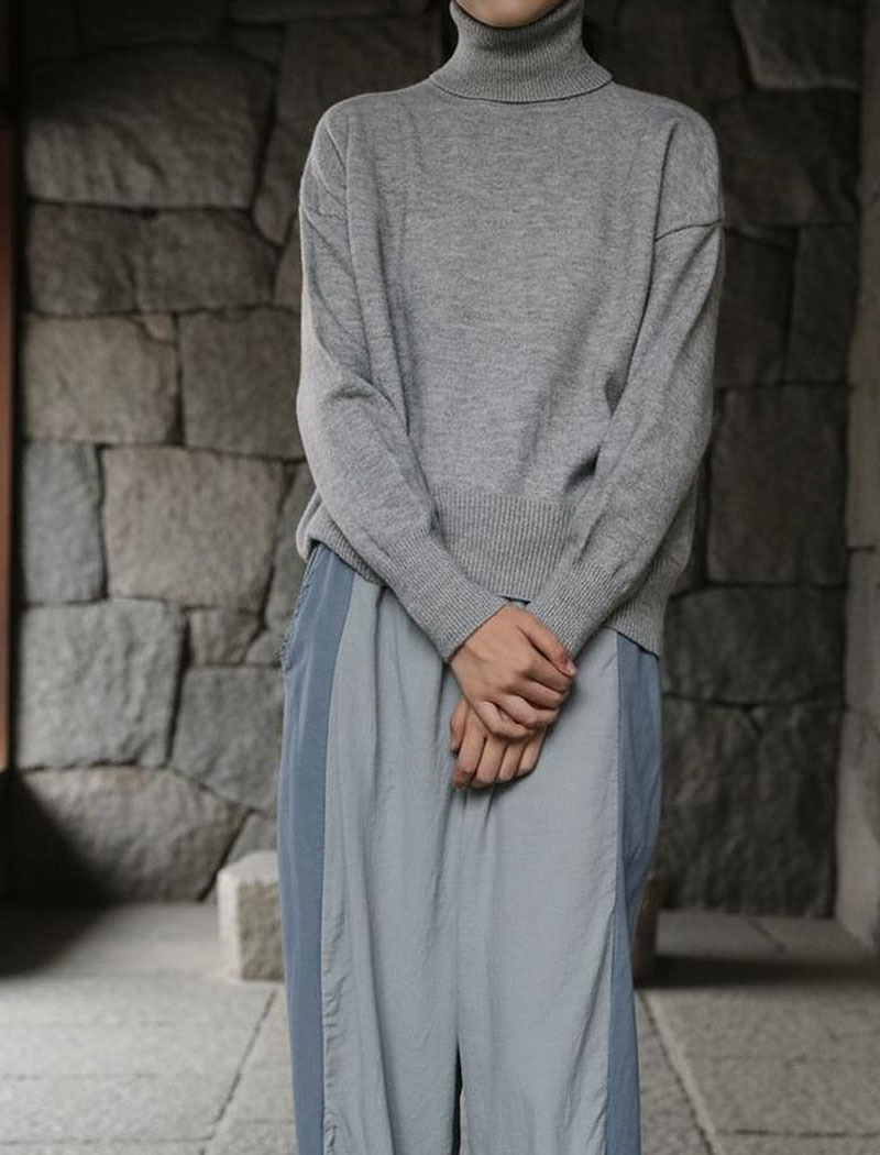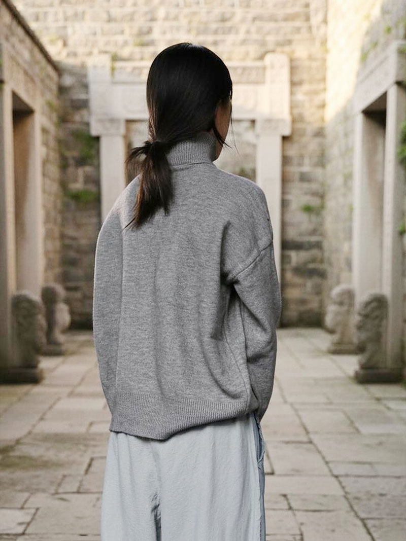 Elegant Commuter Knitted Long-Sleeve T-Shirt With A High Neck Pullover Sweater