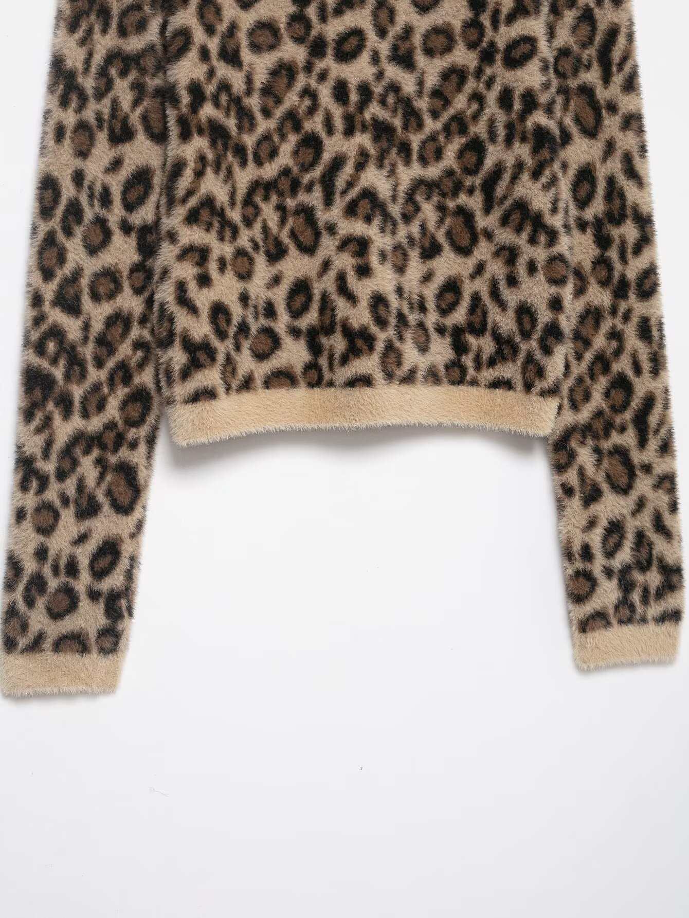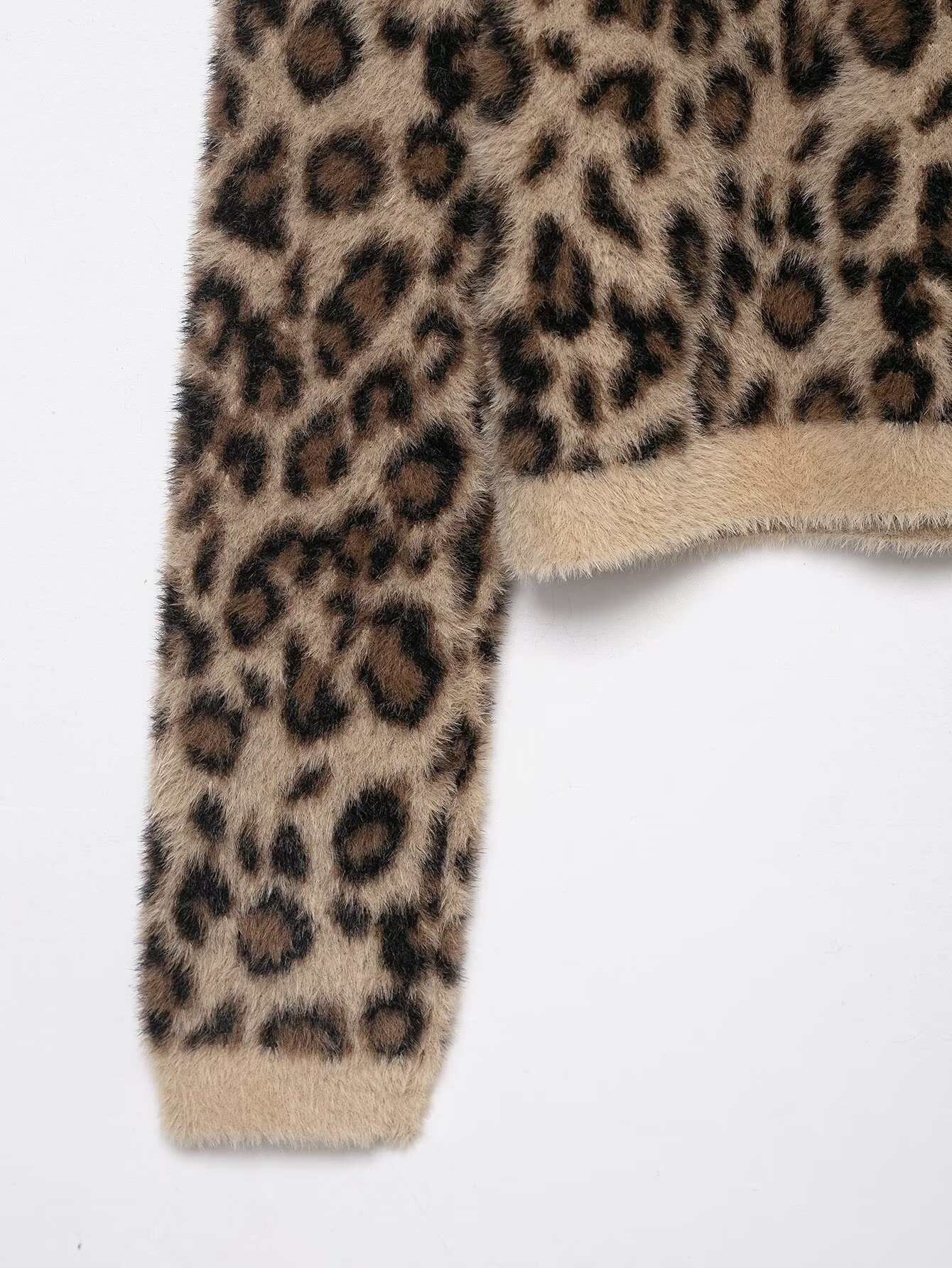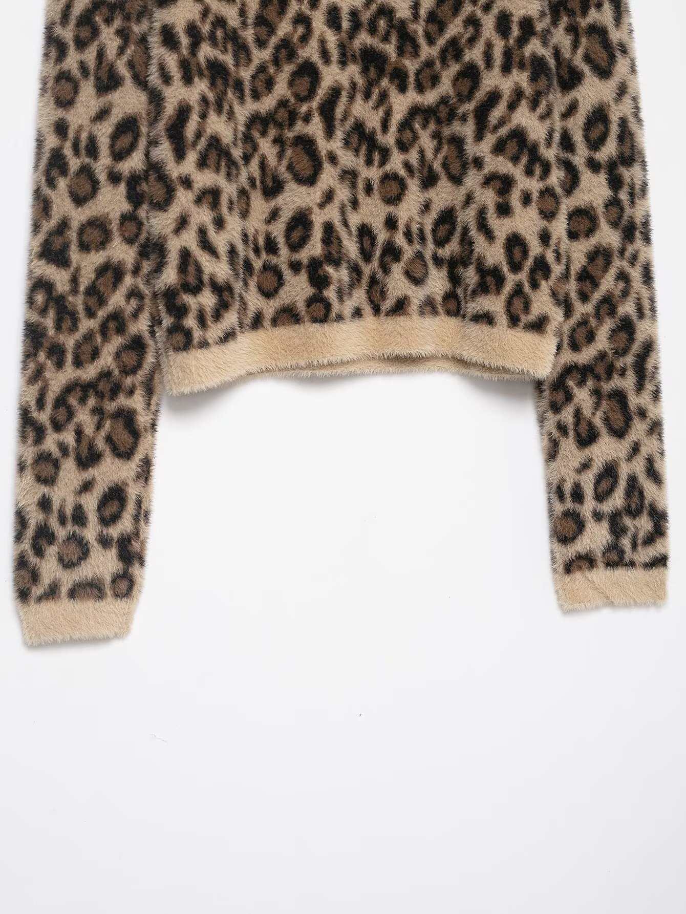 Retro Leopard-Print Crew-Neck Cropped Knitted Sweater - [[{"value":"{{ Babyvera Babyvera  }}"}]]