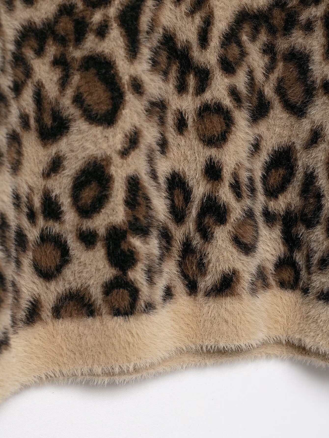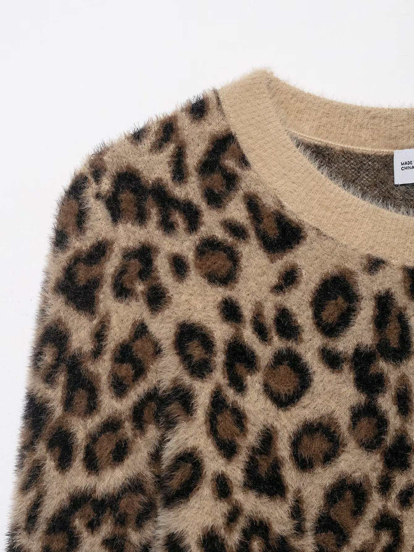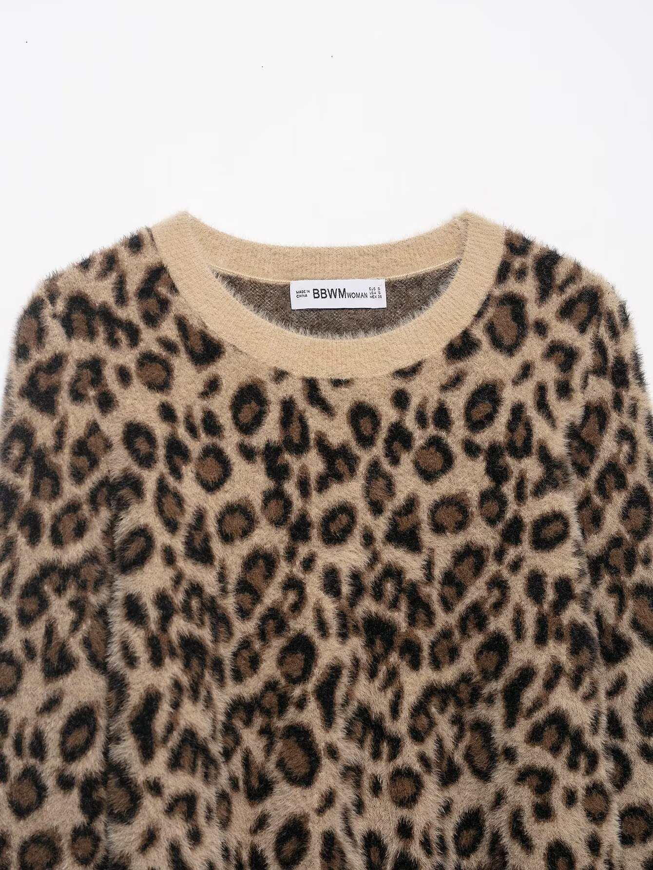 Retro Leopard-Print Crew-Neck Cropped Knitted Sweater - [[{"value":"{{ Babyvera Babyvera  }}"}]]