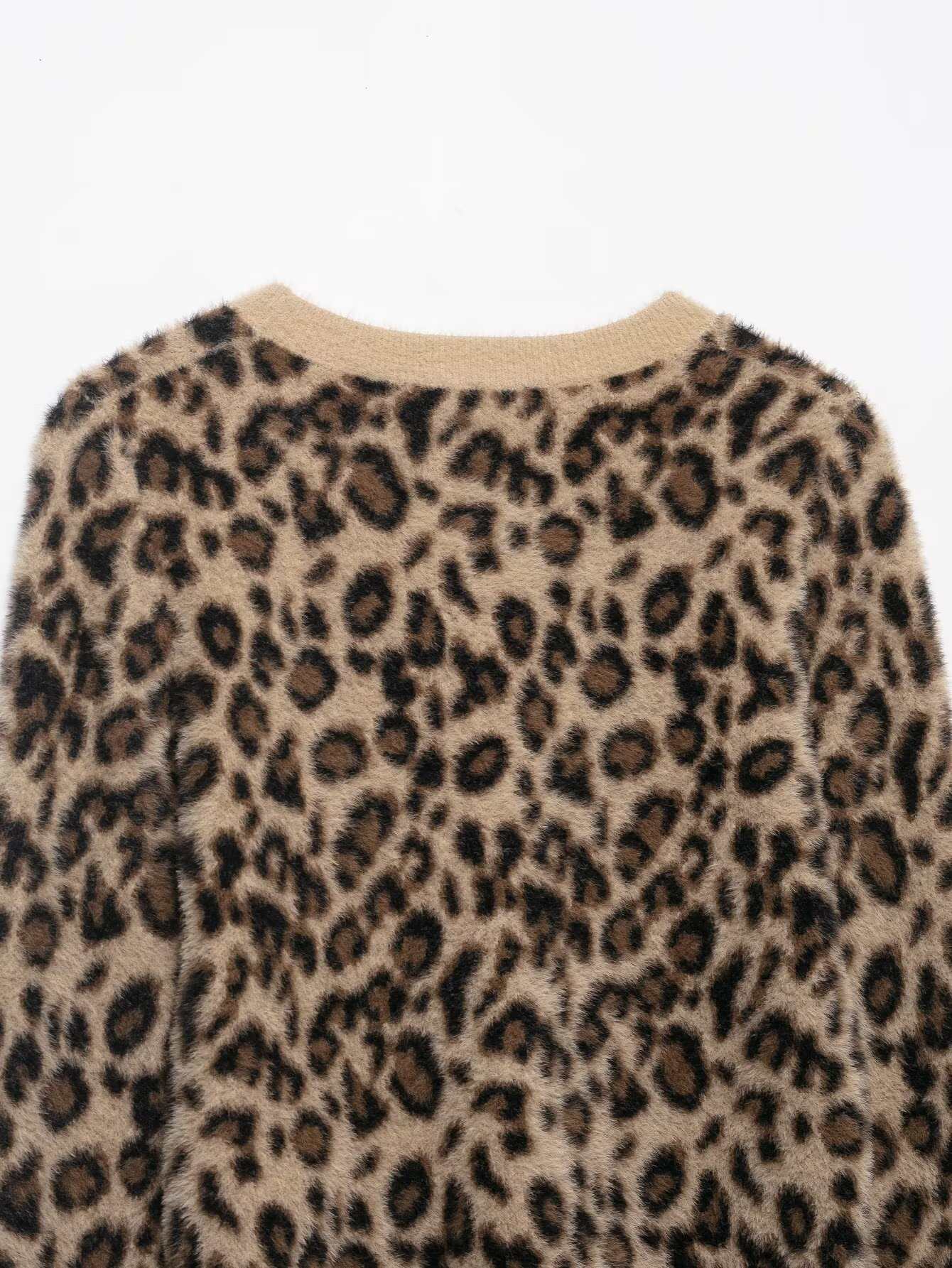 Retro Leopard-Print Crew-Neck Cropped Knitted Sweater