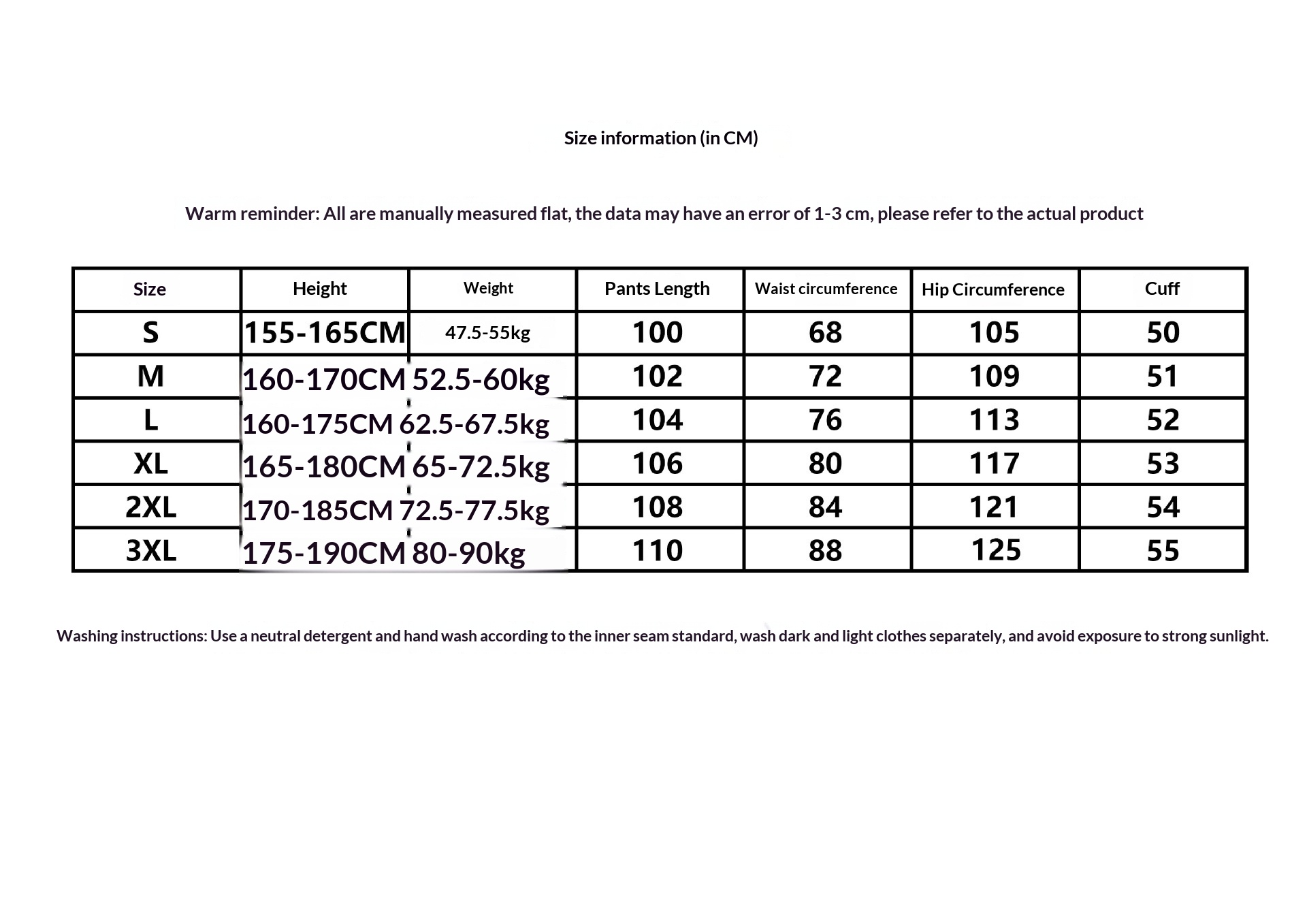 Sizes: S, M, L, XL, 2XL, 3XL