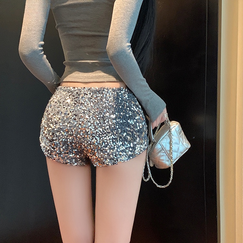 Retro Sequin Slim-fit Ultra-tight Letter-print Casual Shorts